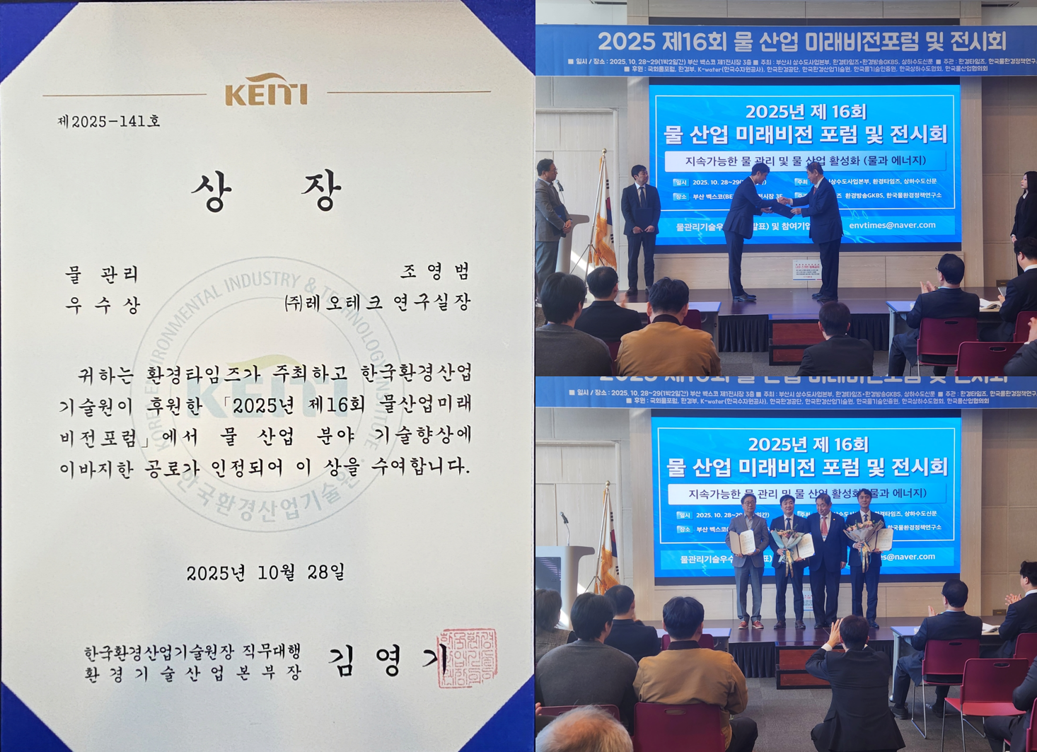 레오테크 조영범 연구실장, 물산업 발전 공로 인정받아 '물 관리 우수상' 수상