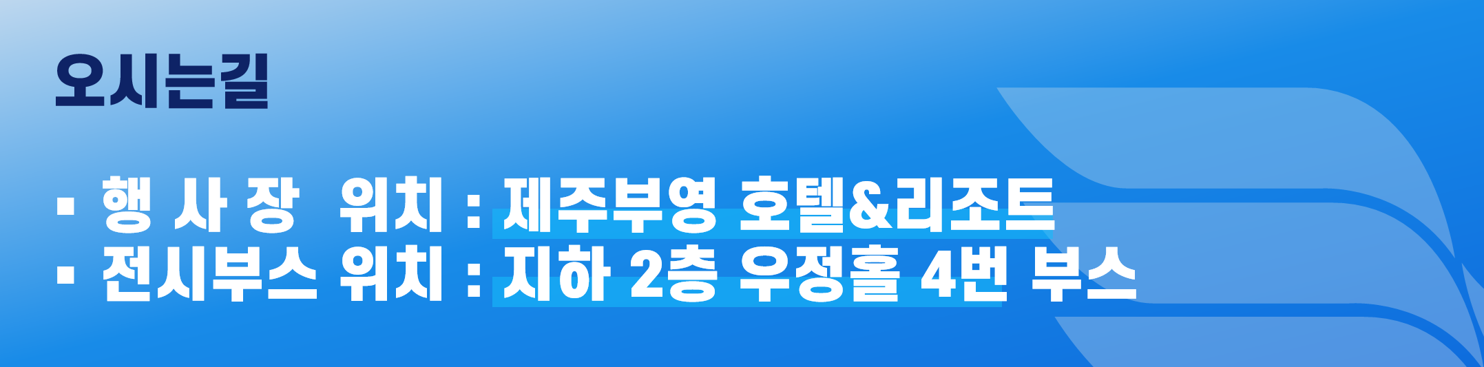 [ 전시장 위치 : 제주부영 호텔&리조트 지하2층(우정홀) 4번부스 ]