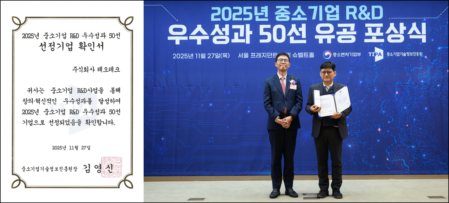 레오테크, '2025년 중소기업 기술개발 R&D 우수성과 50선' 선정
